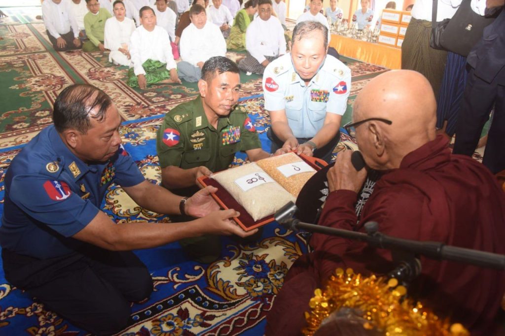 တပ်မတော်(ကြည်း၊ရေ၊လေ) မိသားစုများနှင့်စေတနာရှင် ပြည်သူများက ဆွမ်းဆန်တော်၊ ဆီ၊ ဆား၊ ပဲ၊ ဆေးနှင့် ဆွမ်းပဒေသာပင် အလှူငွေများ လှူဒါန်းပွဲကို ယမန်နေ့မွန်းလွဲပိုင်းက နေပြည်တော်၊ တပ်ကုန်းမြို့၊ ငွေတောင်တောရကျောင်းတိုက်၌ ကျင်းပခဲ့ပါတယ်။