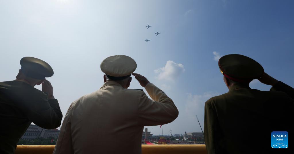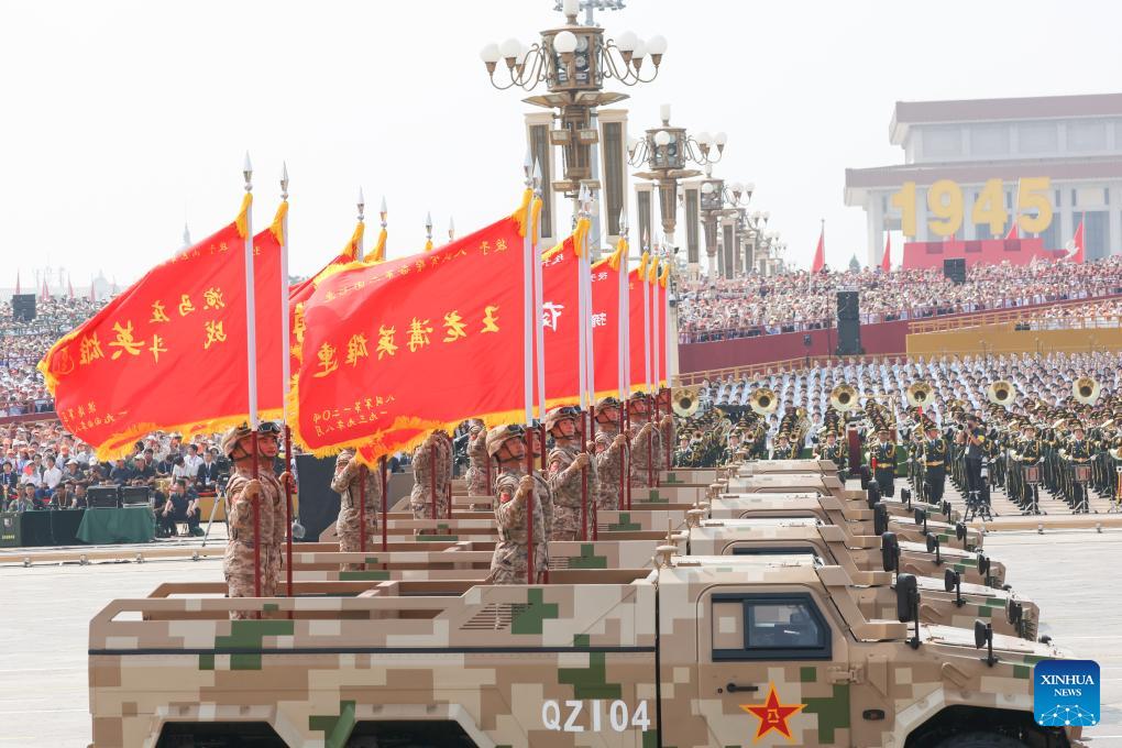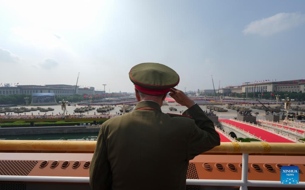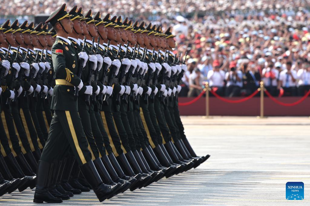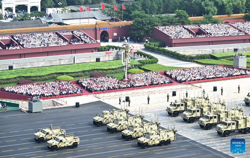 တရုတ်ပြည်သူများ၏ ဂျပန်ခုခံတော်လှန်ရေး စစ်ပွဲနှင့် ကမ္ဘာ့ဖက်ဆစ်ဆန့်ကျင်ရေးစစ်ပွဲ အောင်နိုင်ခြင်းနှစ် (၈၀)ပြည့် အထိမ်းအမှတ် စစ်ရေးပြအခမ်းအနားကို ဒီကနေ့(စက်တင်ဘာ ၃ ရက်) ဒေသစံတော်ချိန် နံနက် ၉ နာရီတွင် တရုတ်နိုင်ငံ၊ ဘေကျင်းမြိုရှိ Tian’anmen ရင်ပြင်၌ ကျင်းပနေတဲ့မြင်ကွင်းဓာတ်ပုံများဖြစ်ပါတယ်။