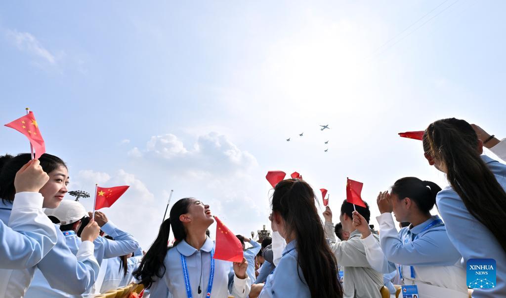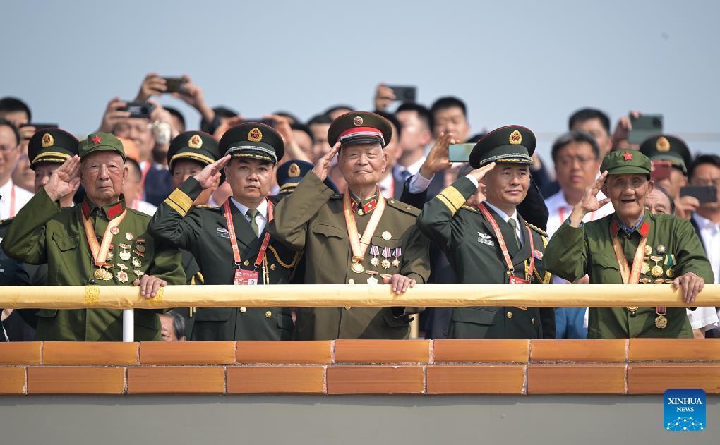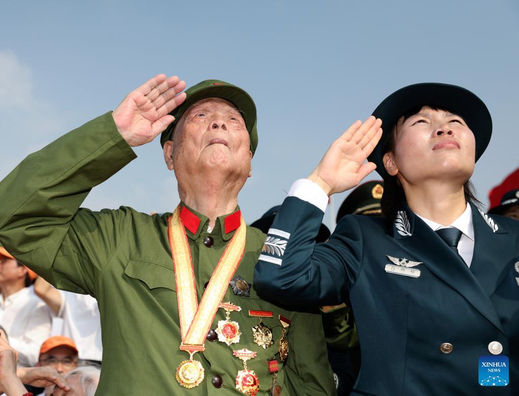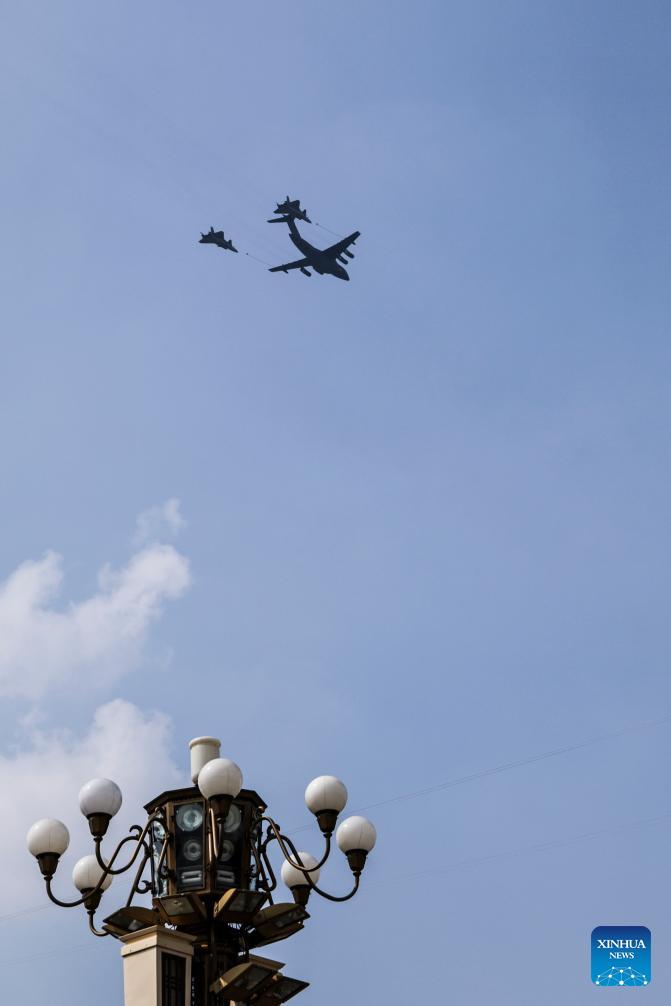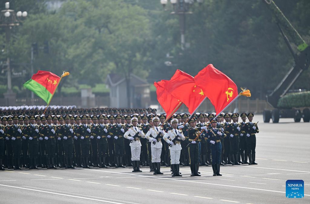 တရုတ်ပြည်သူများ၏ ဂျပန်ခုခံတော်လှန်ရေး စစ်ပွဲနှင့် ကမ္ဘာ့ဖက်ဆစ်ဆန့်ကျင်ရေးစစ်ပွဲ အောင်နိုင်ခြင်းနှစ် (၈၀)ပြည့် အထိမ်းအမှတ် စစ်ရေးပြအခမ်းအနားကို ဒီကနေ့(စက်တင်ဘာ ၃ ရက်) ဒေသစံတော်ချိန် နံနက် ၉ နာရီတွင် တရုတ်နိုင်ငံ၊ ဘေကျင်းမြိုရှိ Tian’anmen ရင်ပြင်၌ ကျင်းပနေတဲ့မြင်ကွင်းဓာတ်ပုံများဖြစ်ပါတယ်။