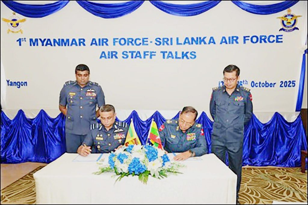 မြန်မာနိုင်ငံက အိမ်ရှင်အဖြစ်ကျင်းပပြုလုပ်သည့် ပထမအကြိမ် မြန်မာ-သီရိလင်္ကာ နှစ်နိုင်ငံ လေတပ် ချင်းတွေ့ဆုံဆွေးနွေးပွဲ (1st Myanmar Air Force– Sri Lanka Air Force Air Staff Talks) ကို အောက်တိုဘာ ၁၄ ရက် နံနက်ပိုင်းတွင် ရန်ကုန်မြို့ရှိ Chatrium Hotel ၌ပြုလုပ်ရာ တပ်မတော်(လေ)မှ ဒုတိယစစ်ဦးစီးအရာရှိချုပ်(လေ)(စက်မှုလက်မှု) ဗိုလ်ချုပ်မျိုးအောင်လတ် ဦးဆောင်သော ကိုယ်စားလှယ်အဖွဲ့ဝင်များ၊ သီရိလင်္ကာလေတပ်မှ Air Vice Marshal SDGM Silva ဦးဆောင်သော ကိုယ်စားလှယ်အဖွဲ့ဝင်များနှင့်တာဝန်ရှိသူများ တက်ရောက်ခဲ့ပါတယ်။