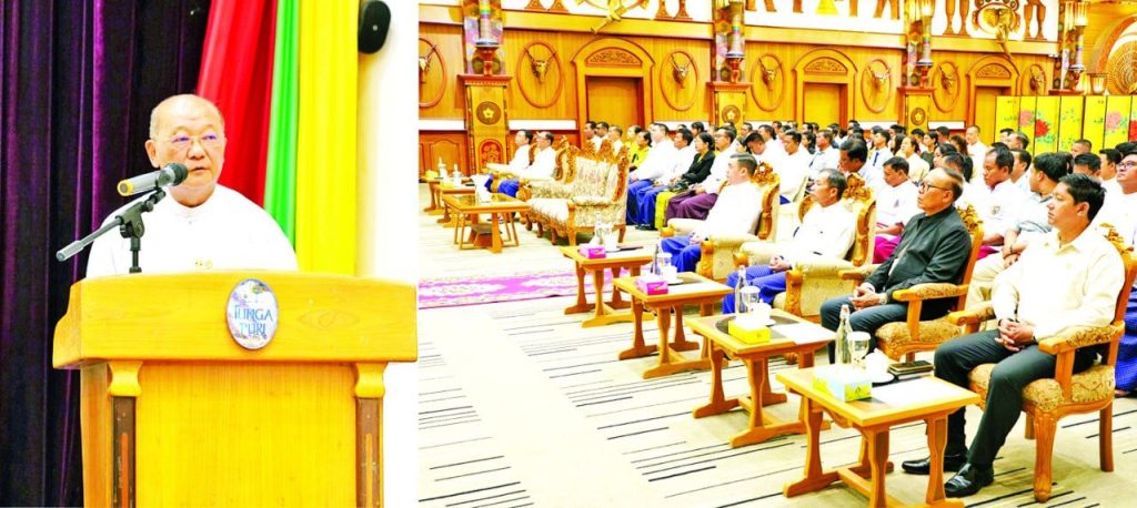 ဟိုတယ်နှင့်ခရီးသွားလာရေးဝန်ကြီးဌာန၏ ကြီးကြပ်မှု၊ မြန်မာနိုင်ငံဟိုတယ်ဆိုင်ရာ လုပ်ငန်းရှင်များအသင်း(နေပြည်တော်ဇုန်)၏ စီစဉ်မှုဖြင့် ပြည်ထောင်စုနယ်မြေ နေပြည်တော်ရှိ ဟိုတယ်များတွင် တာဝန်ထမ်းဆောင်နေကြသော လုံခြုံရေးဝန်ထမ်းများ၏ စွမ်းဆောင်ရည်ကို ပိုမိုမြှင့်တင်ပေးနိုင်ရန် ရည်ရွယ်ဖွင့်လှစ်သည့် ရိုးရာကိုယ်ခံပညာနှင့် မြန်မာ့သိုင်းသင်တန်းဆင်းပွဲကို ယမန်နေ့နံနက်ပိုင်းတွင် နေပြည်တော် ဟိုတယ်ဇုန်(၁)ရှိ တုံဂပူရိဟိုတယ်၌ ကျင်းပပါတယ်။