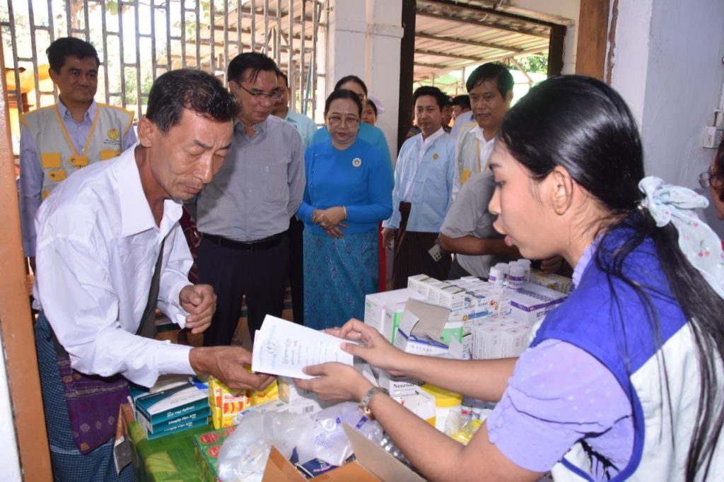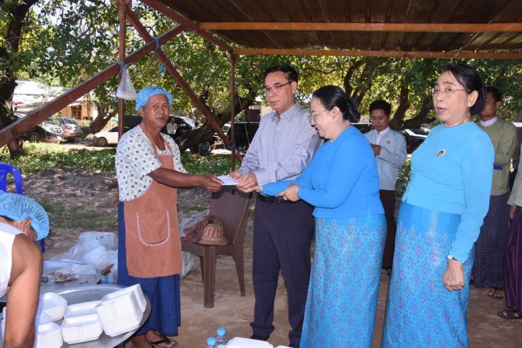 ထို့နောက် တိုင်းဒေသကြီး ဝန်ကြီးချုပ်နှင့် ဇနီးတို့သည် ဆေးကုသမှုလာရောက်ခံယူကြသူများအား နေ့လည်စာထမင်းဗူးနှင့် ရေသန့်တို့အား ပေးအပ်ခဲ့ပြီး အထူးကုဆရာဝန်ကြီးများ၊ ကျန်းမာရေးဝန်ထမ်းများနှင့် ကူညီဆောင်ရွက်ခဲ့ကြသည့် ပရဟိတအဖွဲ့များအား ဂုဏ်ပြုချီးမြှင့်ငွေများ ပေးအပ်ခဲ့ပါတယ်။