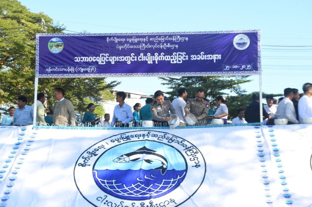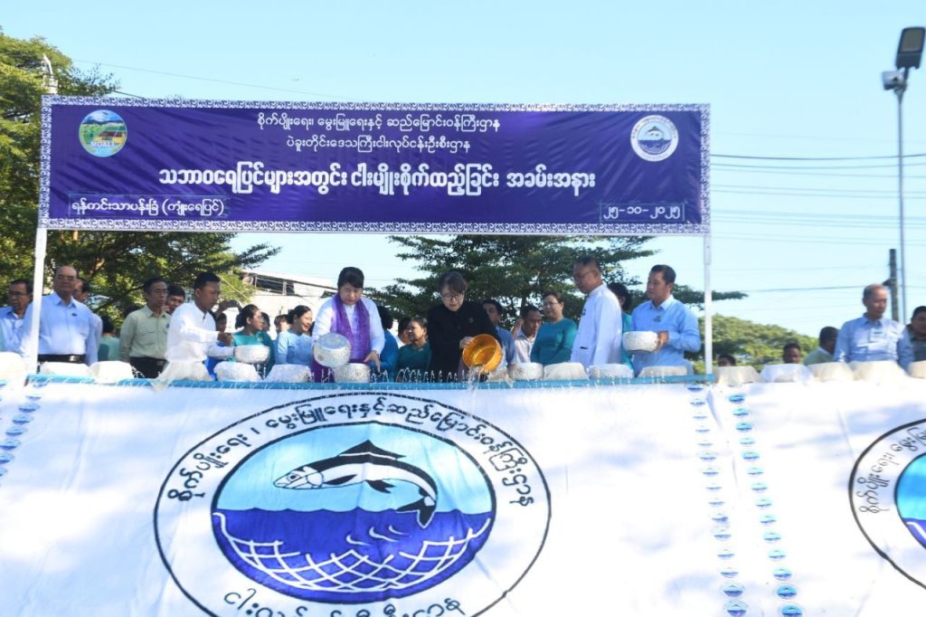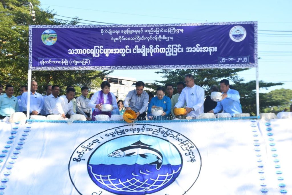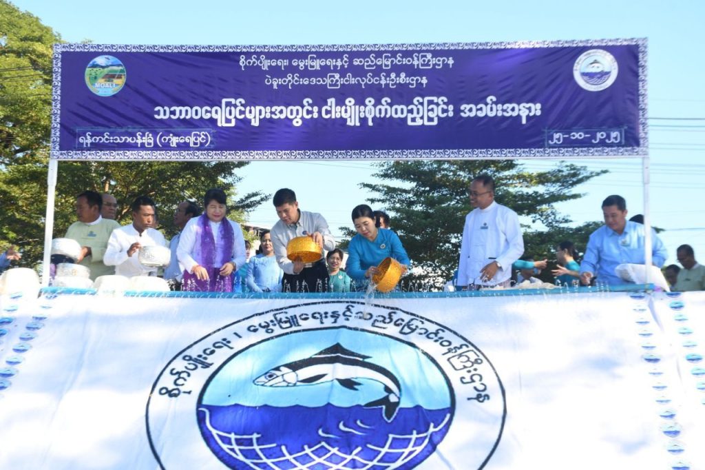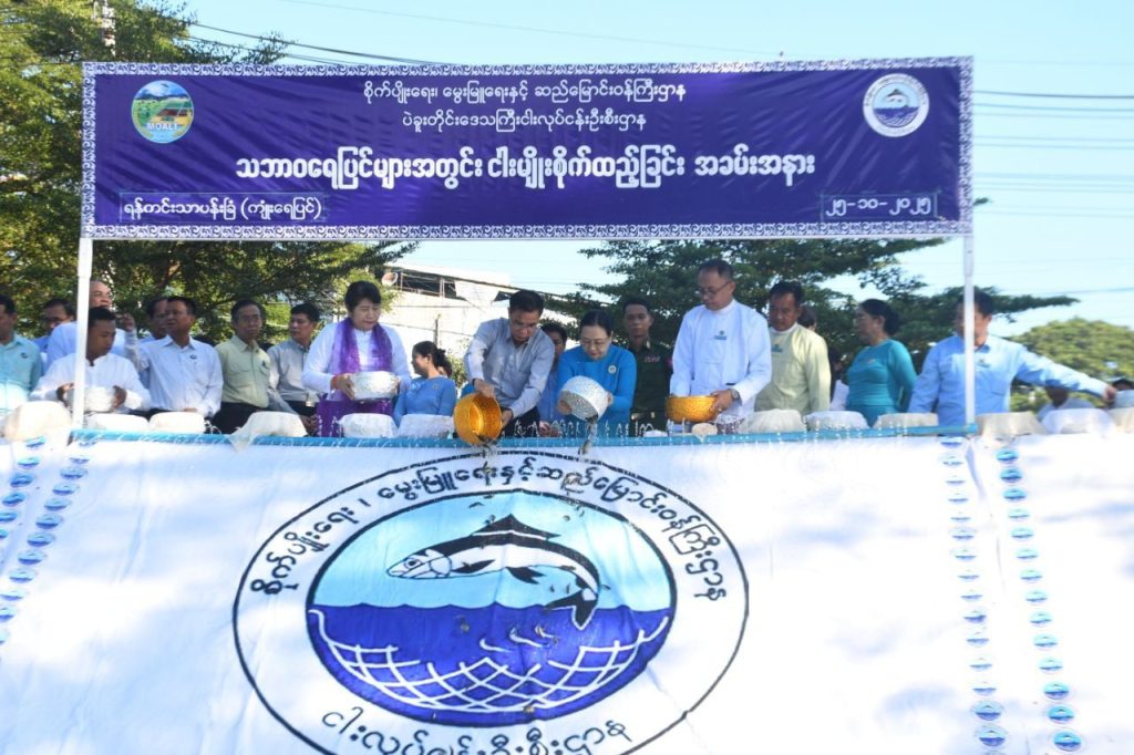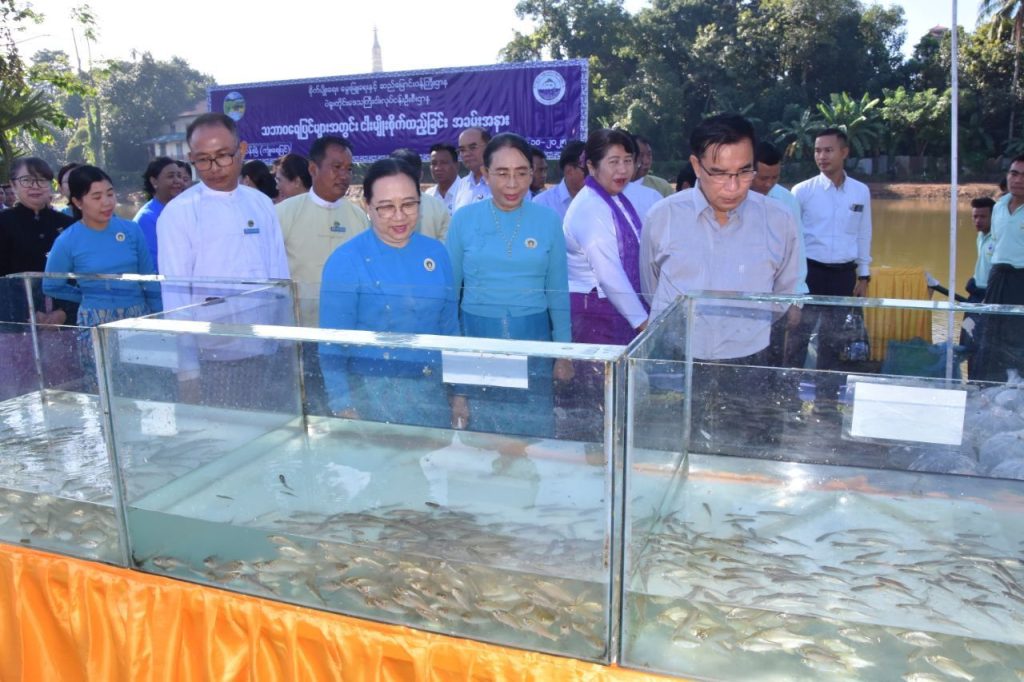 တိုင်းဒေသကြီး ဝန်ကြီးချုပ် ဦးမျိုးဆွေဝင်းနှင့် ဇနီး ဒေါ်စိုးစိုးသက်တို့က ဟံသာဝတီ ရှေးဟောင်းကျုံး သဘာဝရေပြင်အတွင်းသို့ တိုင်းရင်းငါးမျိုး စတင်စိုက်ထည့်ပေးခဲ့ပါတယ်။