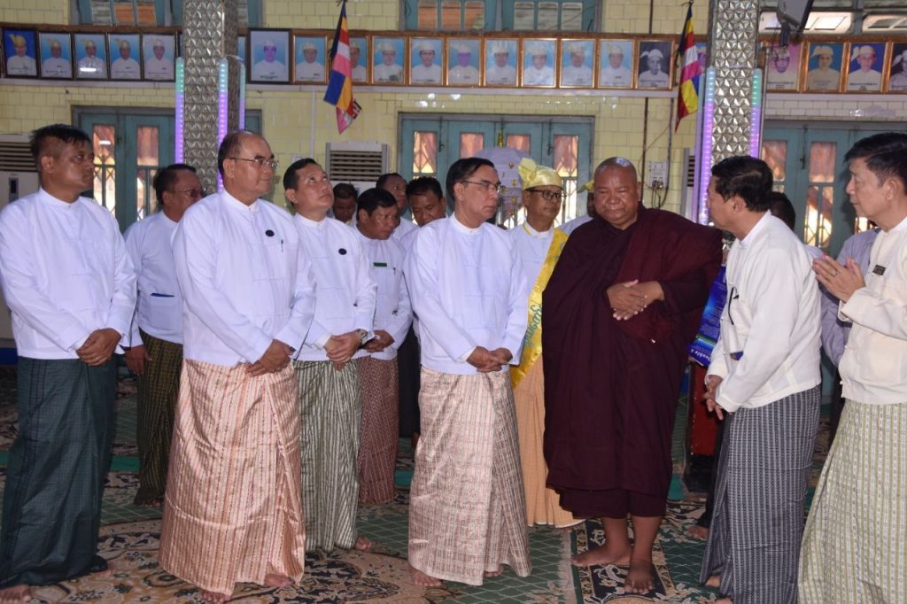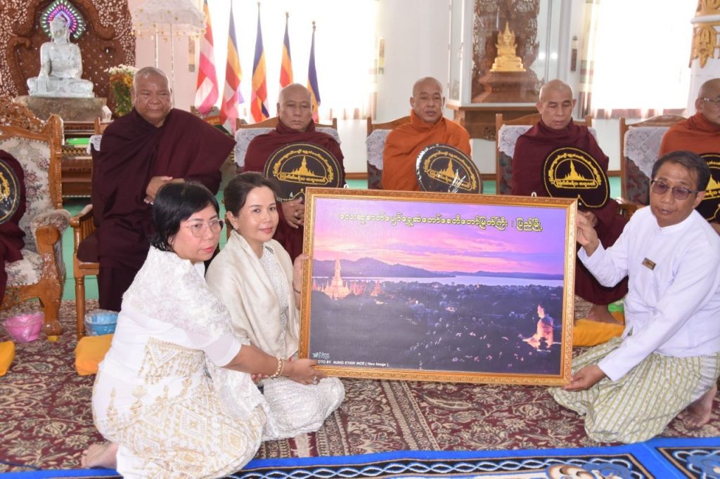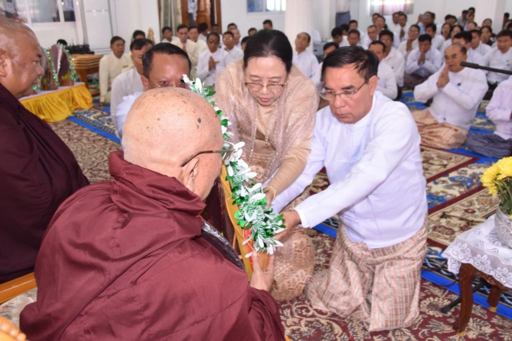 ယင်းနောက် ပဲခူးတိုင်းဒေသကြီးအစိုးရအဖွဲ့၊ ဝန်ကြီးချုပ် ဦးမျိုးဆွေဝင်းက သာသနာရေးဆိုင်ရာ များ လျှောက်ထားခဲ့ပြီး ဝန်ကြီးချုပ်အမှူးပြုသော အလှူရှင်များက ကြွရောက်လာသည့် ဆရာတော်ကြီး များအား လှူဖွယ်ဝတ္တုပစ္စည်းများ ဆက်ကပ်လှူဒါန်းခဲ့ကြရာ တာဝန်ရှိသူများက ဂုဏ်ပြုမှတ်တမ်းလွှာများ အသီးသီးပေးအပ်ခဲ့ကြပါတယ်။