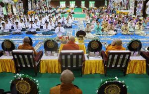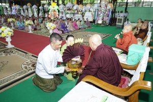 တိုင်းမှူးနှင့်တက်ရောက်လာကြသူများက မြစ်ကြီးနားမြို့ ဝန်းသိုကျောင်းတိုက်ဆရာတော်ထံမှ ငါးပါးသီလခံယူဆောက်တည်ကြပါတယ်။