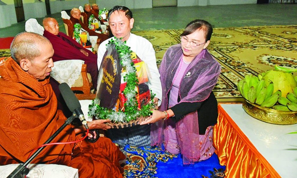 ဆက်လက်ပြီး လှူဖွယ်ပစ္စည်းများ ဆက်ကပ်လှူဒါန်းခြင်း၊ လှူဒါန်းမှုအစုစုအတွက် ရေစက်သွန်းချအမျှပေးဝေခြင်းများ ဆောင်ရွက်ကြပြီးနောက် သံဃာတော်အရှင်သူမြတ်များအား အရုဏ်ဆွမ်းဆက်ကပ်လှူဒါန်းခဲ့ကြကြောင်းသိရပါတယ်။