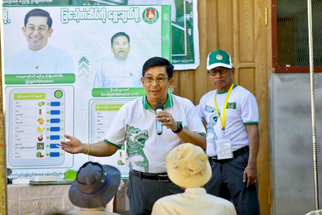 ပြည်ထောင်စုကြံ့ခိုင်ရေးနှင့်ဖွံ့ဖြိုးရေးပါတီဒုတိယဥက္ကဋ္ဌ ဦးမျိုးဇော်သိမ်း ပဲခူးတိုင်းဒေသကြီး( အနောက်ပိုင်း) ပေါက်ခေါင်းမြို့၊ဝက်တိုးကျေးရွာရှိဒေသခံမဲဆန္ဒရှင်ပြည်သူများ၊ပါတီဝန်းရံသူများနှင့် တွေ့ဆုံ