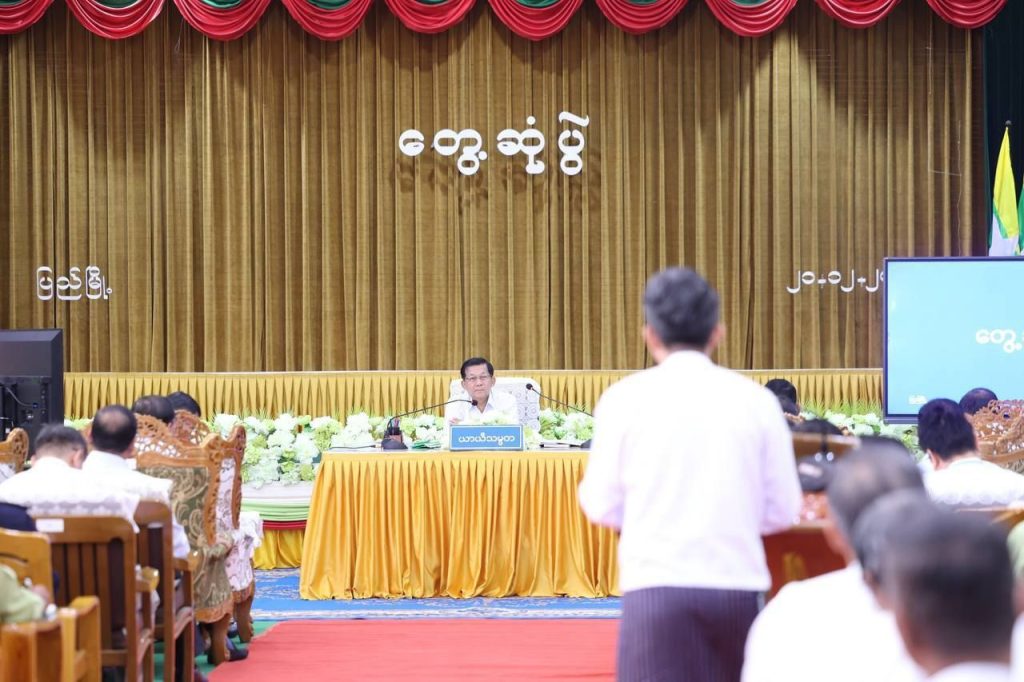 ပြည်ထောင်စုသမ္မတမြန်မာနိုင်ငံတော် ယာယီသမ္မတ နိုင်ငံတော်နိုင်ငံတော် လုံခြုံရေးနှင့် အေးချမ်းသာယာရေးကော်မရှင် ဥက္ကဋ္ဌ ဗိုလ်ချုပ်မှူးကြီး မင်းအောင်လှိုင် သည် ပဲခူးတိုင်းဒေသကြီး၊ ပြည်ခရိုင်အတွင်းရှိရှိ ဌာနဆိုင်ရာတာဝန်ရှိသူများ၊ ရပ်မိရပ်ဖ များ၊ အသေးစား၊ အငယ်စားနှင့် အလတ်စား (MSME) စီးပွားရေးလုပ်ငန်းရှင်များနှင့် ယနေ့နံနက်ပိုင်းတွင် ပြည်မြို့၊ သီရိခေတ္တရာ ရတနာ မြို့တော်ခန်းမ၌ တွေ့ဆုံ၍ ဒေသ ဖွံ့ဖြိုးတိုးတက်ရေး ဆွေးနွေးပြောကြားပါတယ်။