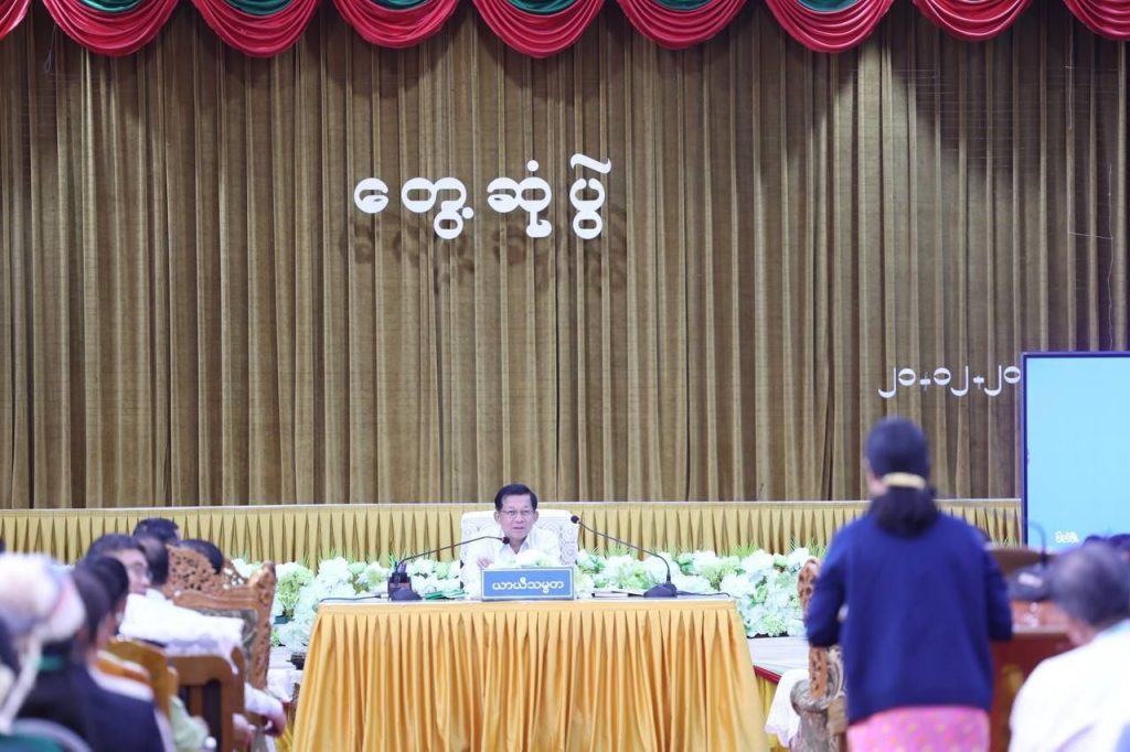 တင်ပြချက်များနှင့် စပ်လျဉ်း၍ နိုင်ငံတော်ယာယီသမ္မတ နိုင်ငံတော်လုံခြုံရေး နှင့် အေးချမ်းသာယာရေးကော်မရှင်ဥက္ကဋ္ဌက မိမိတို့စတင်တာဝန်ယူခဲ့ရသည့်အချိန်တွင် ပညာရေးဝန်ထမ်းအများစုသည် လုပ်ငန်းခွင်စွန့်ခွာမှုများကို သစ္စာမဲ့စွာဖြင့် လုပ်ဆောင် ခဲ့ကြသောကြောင့် နိုင်ငံအတွင်း ပညာရေးဝန်ထမ်းများ လိုအပ်ချက်ဖြစ်ပေါ်နေခြင်းဖြစ် ကြောင်း၊ အချို့ ပညာရေးဝန်ထမ်းများအနေဖြင့် ခြိမ်းခြောက်အကြပ်ကိုင်ခံရမှု၊ ဖိအား ပေးခံရမှု၊ နိုင်ငံရေးဝါဒမှိုင်း ရိုက်ခတ်မှုတို့ကြောင့် လုပ်ငန်းခွင်စွန့်ခွာခဲ့ရမှုများရှိကြောင်း၊ ထို့ကြောင့် နိုင်ငံတော်အနေဖြင့် ထိုသို့စွန့်ခွာခဲ့ရသူများအား အခွင့်အရေးပေးသည့် အနေဖြင့် ပြန်လည်သတင်းပို့သူများကို လုပ်ငန်းခွင်စွန့်ခွာသူများစာရင်းမှ ပယ်ဖျက်ပေး ခဲ့ကြောင်း၊ နိုင်ငံ့ဝန်ထမ်းများအနေဖြင့် ပါတီနိုင်ငံရေး ကင်းရှင်းရမည်ဖြစ်ပြီး နိုင်ငံရေး နှင့် နိုင်ငံ့အရေးကို ကွဲပြားစွာသိမြင်၍ တာဝန်ထမ်းဆောင်ကြရမည်ဖြစ်ကြောင်း၊ လုပ်ငန်းခွင်စွန့်ခွာမှုများကို ပညာရေးနှင့်ကျန်းမာရေးဝန်ထမ်းများက အများဆုံးလုပ် ဆောင်ခဲ့ကြခြင်းဖြစ်ပြီး မိမိတို့အနေဖြင့် ကိုဗစ်-၁၉ ရောဂါ ဖြစ်ပေါ်နေမှု အခက်အခဲ အကြပ်အတည်းများ၊နိုင်ငံရေးပဋိပက္ခများကြောင့်ဖြစ်ပေါ်လာသည့် အကြမ်းဖက်မှုများ၊ ကျောင်းများပြန်လည်ဖွင့်လှစ်ချိန်တွင် ပညာရေးဝန်ထမ်းလိုအပ်ချက်များ စသည်တို့ကို နည်းလမ်းမျိုးစုံဖြင့် ကျော်လွှားခဲ့ရခြင်း ဖြစ်ကြောင်း၊ သို့ဖြစ်၍ နိုင်ငံ့ဝန်ထမ်းများ အနေ ဖြင့် ပါတီနိုင်ငံရေးကင်းရှင်းကြရန်လိုပြီး နိုင်ငံရေးနှင့် နိုင်ငံ့အရေးကို ကွဲပြားစွာ သိမြင် ကြရန်လိုကြောင်း၊ တင်ပြချက်များတွင်ပါဝင်သည့် မူးယစ်ဆေးဝါးတားဆီးနှိမ်နင်းရေး နှင့်ပတ်သက်၍ နိုင်ငံတော်အနေဖြင့်လည်း အင်တိုက်အားတိုက် တိုက်ဖျက်ဆောင်ရွက် လျက်ရှိကြောင်း၊ တာဝန်ရှိသည့် အဖွဲ့အစည်းများအပြင် ပြည်သူလူထုတစ်ရပ်လုံးမှ လည်း ဝိုင်းဝန်းပါဝင်မှသာ မူးယစ်ဆေးဝါးတားဆီးနှိမ်နင်းရေးလုပ်ငန်းများကို အောင် မြင်အောင်ဆောင်ရွက်နိုင်မည်ဖြစ်ကြောင်း၊ အများသုံးသန့်စင်ခန်းများ အဆင့်မြှင့်တင် ရေးနှင့် သန့်ရှင်းမှုရှိစေရေး ကြပ်မတ်ဆောင်ရွက်ပေးစေလိုမှုနှင့်ပတ်သက်၍ သက်ဆိုင် ရာတာဝန်ရှိသည့်ဝန်ထမ်းများအပြင် စည်းနှင့်ကမ်းနှင့် သုံးစွဲတတ်သည့်၊ နေထိုင် သွား လာတတ်သည့် လူ့ဘောင်အဖွဲ့အစည်းနှင့် လူ့အသိုက်အဝန်းများဖြစ်ရန်လည်းလို ကြောင်း၊ ထို့ကြောင့် အခြေခံပညာကျောင်းများကတည်းကပင် အခြေခံစည်းကမ်းများ ကို လေ့ကျင့်သင်ကြားပေးလျက်ရှိပြီး အမျိုးသားစည်းကမ်းအစ စာသင်ကျောင်းက ပင် ဖြစ်ကြောင်း၊ တစ်မျိုးသားလုံးစည်