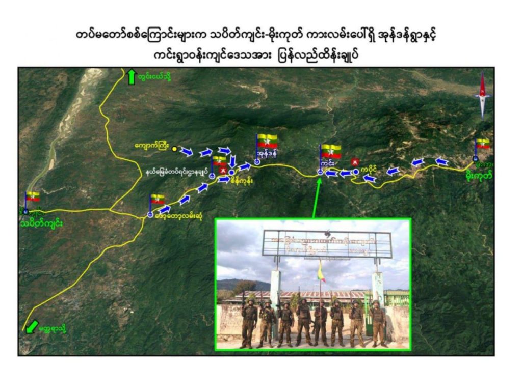 တပ်မတော်စစ်ကြောင်းများက မိုးကုတ် – သပိတ်ကျင်းလမ်းကြောင်းပေါ်ရှိအကြမ်းဖက်သောင်းကျန်းသူများ ယာယီစိုးမိုးထားသည့် အုန်ဒန်ကျေးရွာ၊ ကင်းကျေးရွာနှင့် ရန်သူ့စခန်းတစ်ခုတို့အား ဆက်လက်သိမ်းပိုက်ရရှိ