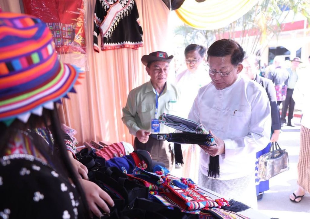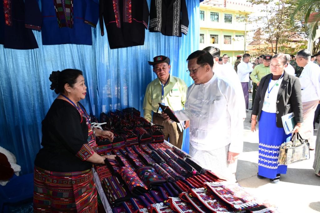 ယင်းနောက် နိုင်ငံတော်ယာယီသမ္မတ နိုင်ငံတော်လုံခြုံရေးနှင့် အေးချမ်းသာယာ ရေးကော်မရှင်ဥက္ကဋ္ဌနှင့်အဖွဲ့ဝင်များသည် ခင်းကျင်းပြသထားသည့် ရှမ်းပြည်နယ် (အရှေ့ပိုင်း)အတွင်းရှိ အသေးစား၊ အငယ်စားနှင့် အလတ်စားစီးပွားရေး (MSME) လုပ် ငန်းများမှထွက်ရှိသည့် ထုတ်ကုန်ပစ္စည်းများအား ပြခန်းတစ်ခုချင်းစီအလိုက် စိတ်ပါဝင် စားစွာဖြင့် လှည့်လည်ကြည့်ရှုပြီး တာဝန်ရှိသူများ၏ တင်ပြချက်များအပေါ် လိုအပ် သည်များ လမ်းညွှန်မှာကြားခဲ့ကြောင်းသိရပါတယ်။