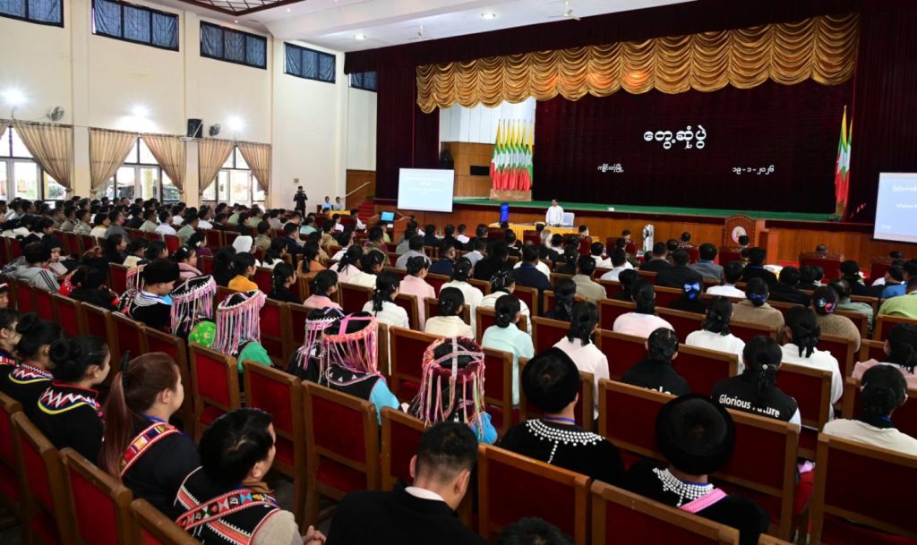 ပြည်ထောင်စုသမ္မတမြန်မာနိုင်ငံတော် ယာယီသမ္မတ နိုင်ငံတော်လုံခြုံရေးနှင့် အေးချမ်းသာယာရေးကော်မရှင်ဥက္ကဋ္ဌ ဗိုလ်ချုပ်မှူးကြီး မင်းအောင်လှိုင် ကျိုင်းတုံမြို့ရှိ ဌာနဆိုင်ရာတာဝန်ရှိသူများ၊ မြို့မိမြို့ဖများနှင့်တွေ့ဆုံ၍ဒေသဖွံ့ဖြိုးတိုးတက်ရေးဆိုင်ရာများဆွေးနွေး