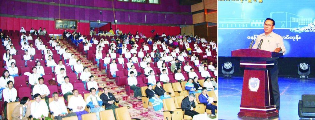 ပြည်ထောင်စုဝန်ကြီး ဦးမောင်မောင်အုန်း မြန်မာ့အသံနှင့်ရုပ်မြင်သံကြား၏ ဝန်ထမ်းသစ်များ စွမ်းရည်မြှင့်သင်တန်းနှင့် မောင်မယ်သစ်လွင်ကြိုဆိုပွဲသို တက်ရောက်ပြီး လုပ်ငန်းဆောင်ရွက်မှုများ ကြည့်ရှုစစ်ဆေး