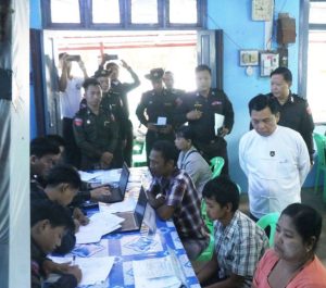 ထို့နောက် ပြည်ထောင်စုဝန်ကြီးသည် ဒေသခံပြည်သူများအနေဖြင့် အထွေထွေရွေးကောက်ပွဲတွင် နိုင်ငံသားကတ်ပြား ပျက်စီး/ပျောက်ဆုံးမှုကြောင့် မဲပေးပိုင်ခွင့် မဆုံးရှုံးစေရေးနှင့် နိုင်ငံသားကတ်ပြား ကိုင်ဆောင်မဲပေးနိုင်ရေးအတွက် ဝန်ထမ်းများက နိုင်ငံသားကတ်ပြားပျက်စီး/ပျောက်ဆုံးသည့် ဒေသခံပြည်သူများအား ပန်းခင်းစီမံချက်အဆင့် (၃) ဖြင့် အိမ်ထောင်စုလူဦးရေစာရင်းနှင့် နိုင်ငံသားစိစစ်ရေး ကတ်ပြားထုတ်ပေးနိုင်ရန် လုပ်ထုံးလုပ်နည်းနှင့်အညီ စိစစ်ကာ လုပ်ငန်းစဉ်အဆင့်ဆင့် ဆောင်ရွက်နေမှုနှင့် နိုင်ငံသားစိစစ်ရေးကတ်ပြား ရရှိပြီးသူများအား e-ID စနစ်ဖြင့် Biographic/ Biometric ကောက်ယူကာ Unique ID နံပါတ်တစ်ပါတည်း ဆောင်ရွက်ထုတ်ပေးနေမှုအခြေအနေများကို လှည့်လည်ကြည့်ရှုအားပေးပြီး One Stop Service ဖြင့် ဆောင်ရွက်ပြီးဖြစ်သည့် နိုင်ငံသားစိစစ်ရေးကတ်ပြားများကို ကာယကံရှင်တစ်ဦးချင်းထံ ပေးအပ်ပါတယ်။