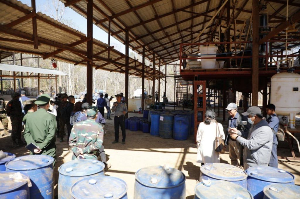 မူးယစ်ဆေးဝါးများနှင့် မူးယစ်ဆေးဝါးချက်လုပ်ရာတွင် အသုံးပြုသည့်ပစ္စည်းများ ပမာဏအများဆုံးသိမ်းဆည်းရမိမှုနှင့်ပတ်သက်၍ ပြည်ထောင်စုသမ္မတမြန်မာနိုင်ငံတော်အစိုးရ၏ ဒုတိယအကြိမ်သတင်းစာရှင်းလင်းပွဲကျင်းပ ဖော်ထုတ်ဖမ်းဆီးရမိသည့် မူးယစ်ဆေးဝါးချက်လုပ်သည့်နေရာများသို့သွားရောက်၍ မြေပြင်ကွင်းဆင်းလိုက်လံရှင်းလင်းပြသ