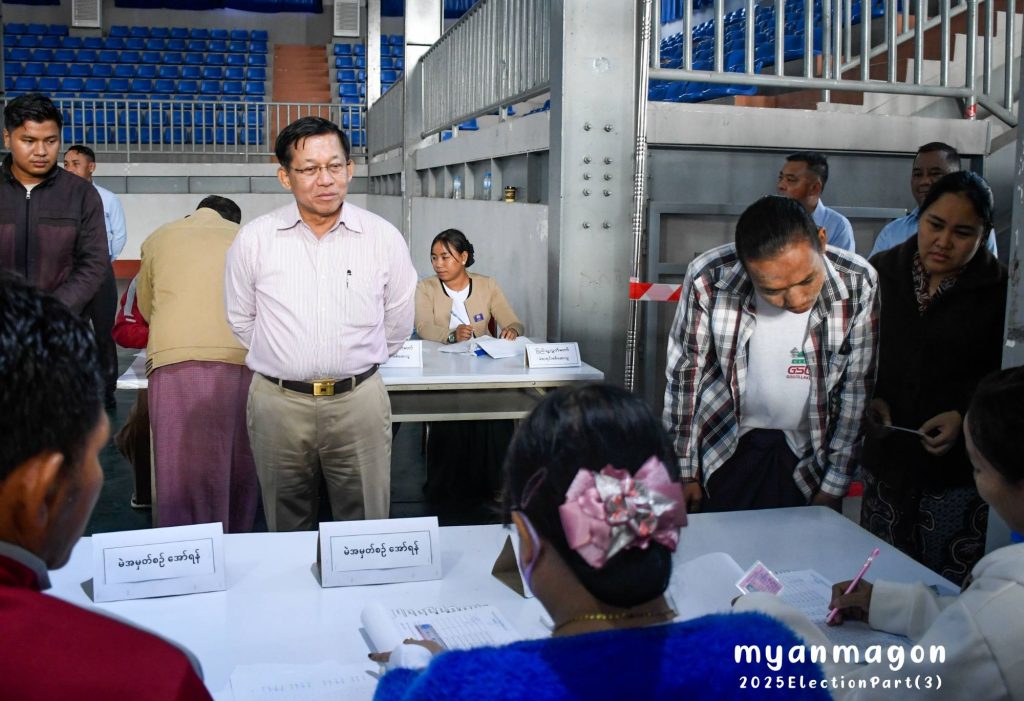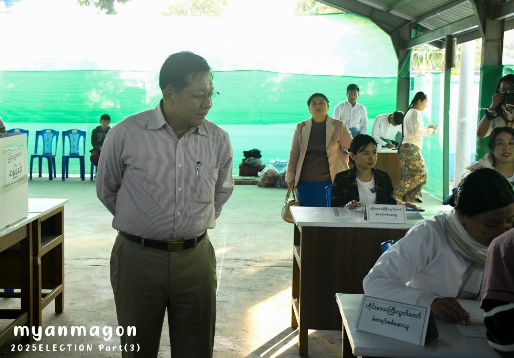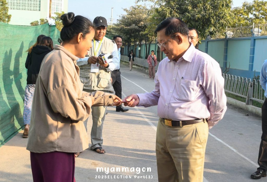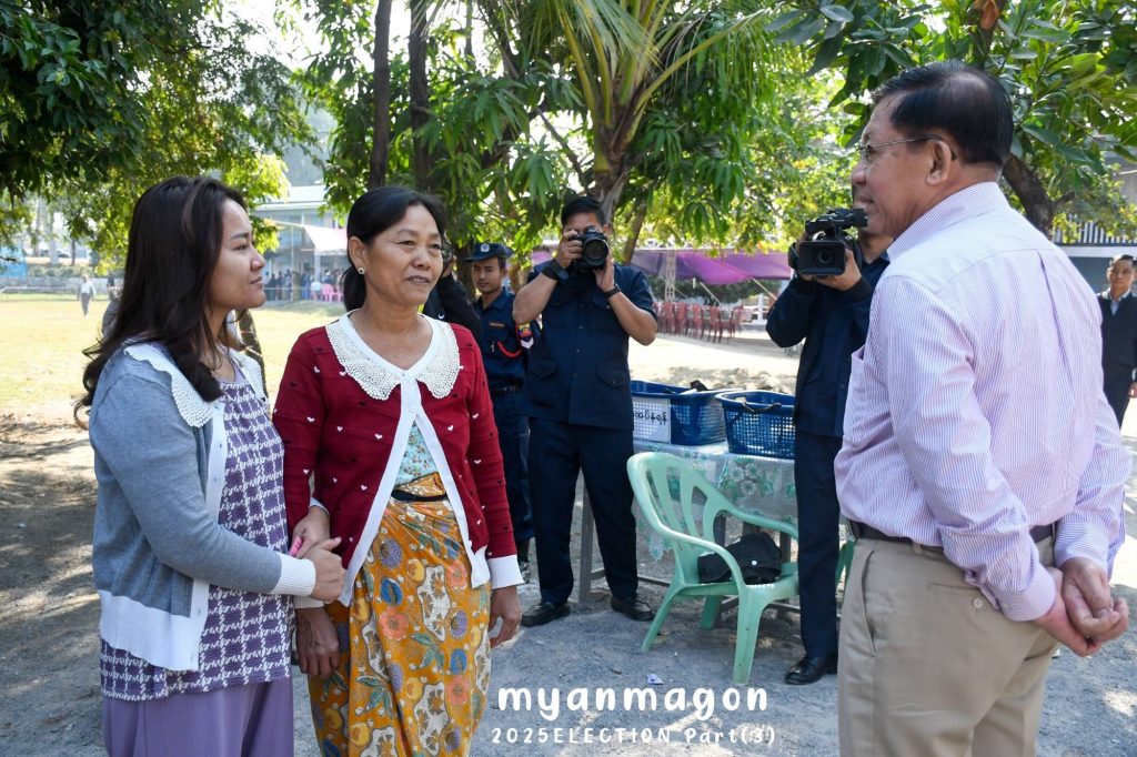 နိုင်ငံတော်ယာယီသမ္မတ ဗိုလ်ချုပ်မှူးကြီးမင်းအောင်လှိုင် ရွေးကောက်ပွဲ တတိယပိုင်းတွင်ပါဝင်သည့် ချမ်းမြသာစည်မြို့နယ်၊ ပုသိမ်ကြီးမြို့နယ်ရှိ မဲရုံများအား လှည့်လည်ကြည့်ရှုပြီး မဲဆန္ဒရှင်ပြည်သူများအား ရင်းရင်းနှီးနှီးနှုတ်ဆက်ခဲ့ပါတယ်။