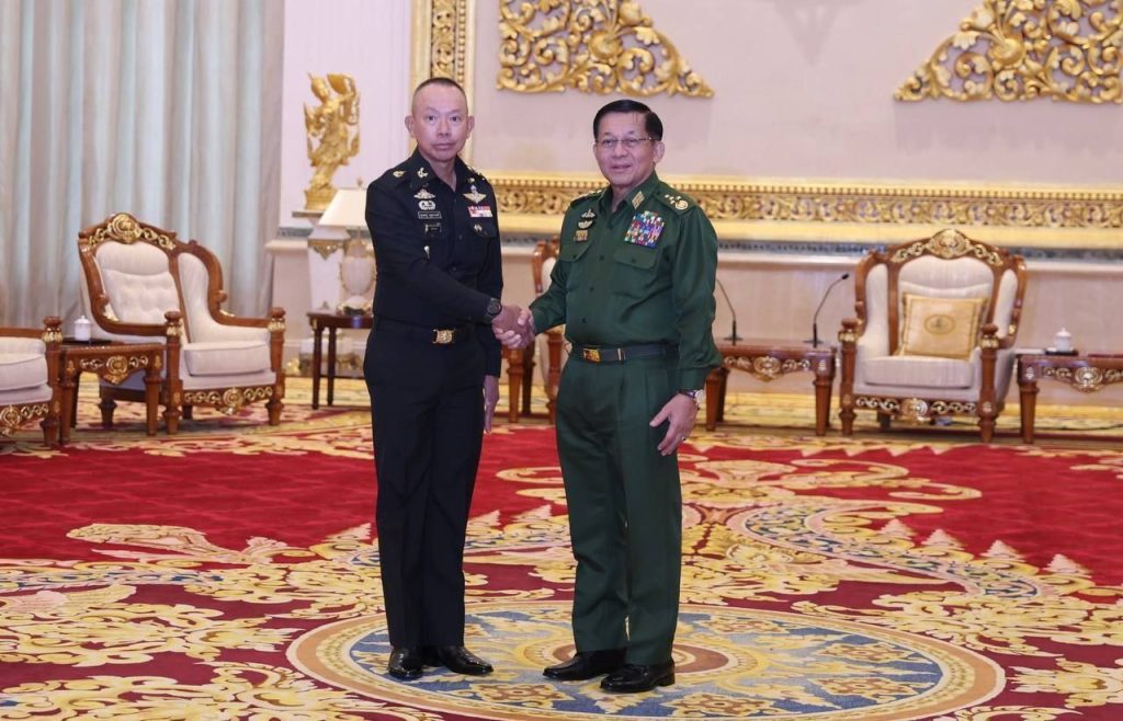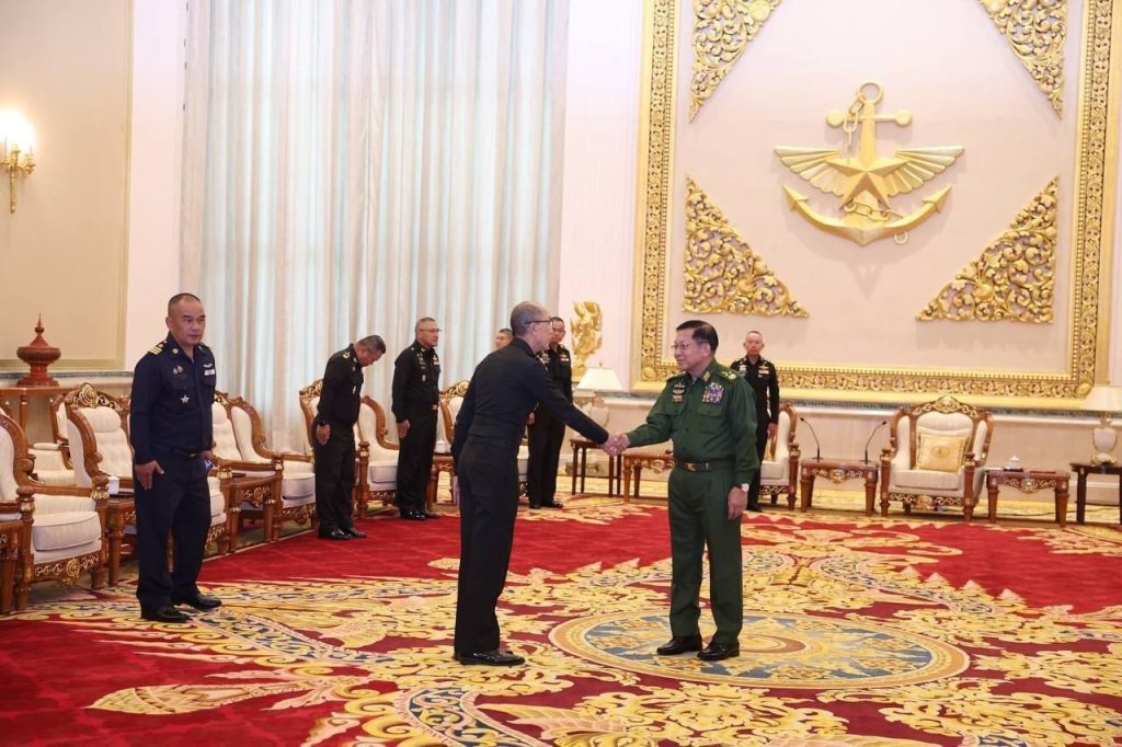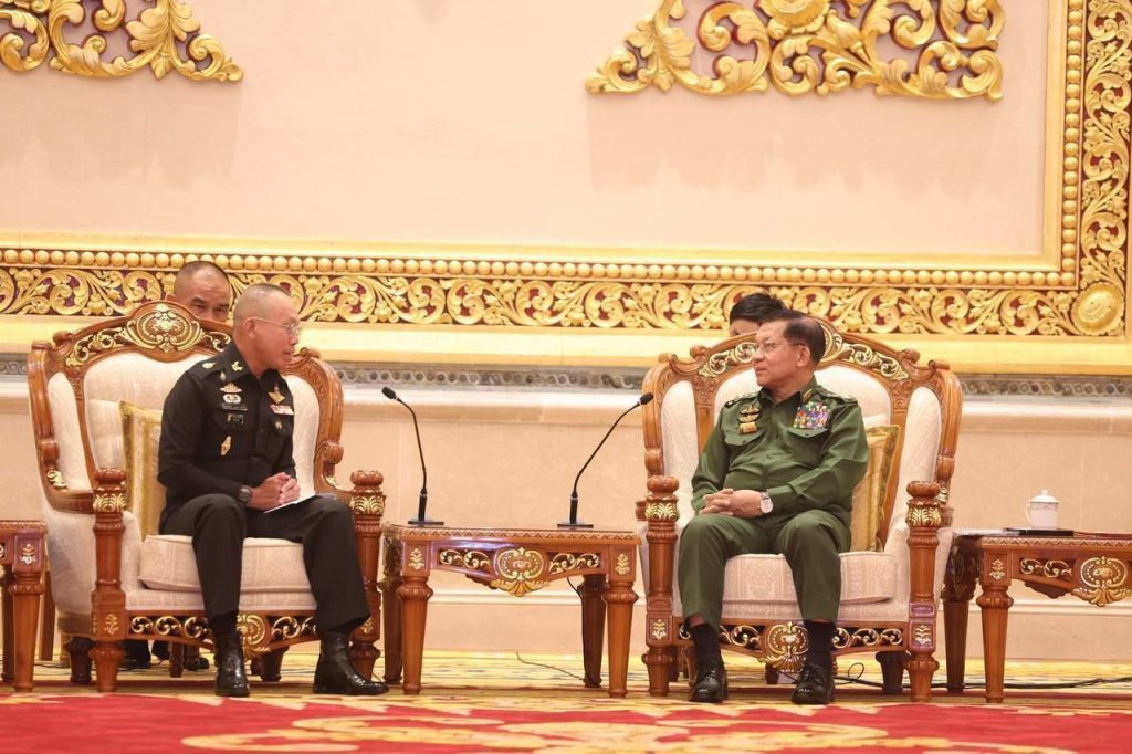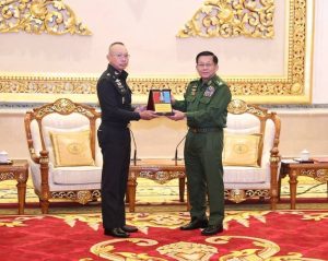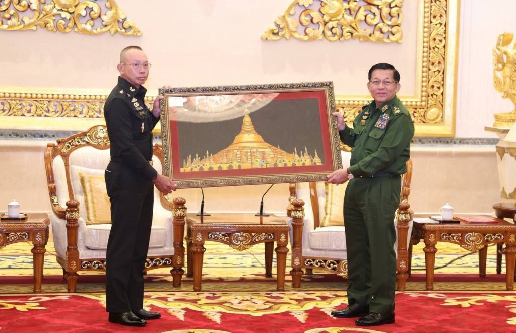 နိုင်ငံတော်လုံခြုံရေးနှင့်အေးချမ်းသာယာရေးကော်မရှင်ဥက္ကဋ္ဌ တပ်မတော်ကာကွယ်ရေးဦးစီးချုပ် ဗိုလ်ချုပ်မှူးကြီး မင်းအောင်လှိုင် ထိုင်းဘုရင့်တပ်မတော်ကာကွယ်ရေးဦးစီးချုပ် ဦးဆောင်သည့် ကိုယ်စားလှယ်အဖွဲ့အား လက်ခံတွေ့ဆုံ